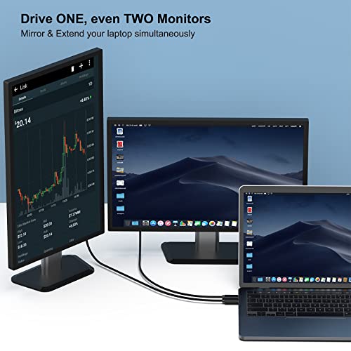 Plug & Play- Plug-and-play, geen adapter of driver/software nodig. Perfecte oplossing voor uw USB-C MacBook Pro/MacBook, iMac, Surface Book 2, Pixelbook, HP Envy 13, Galaxy Book en Chromebook, rijd één of twee DVI-D-monitoren/displays, tot 1920* 1200 @60Hz resolutie. Compatibel met DVI-compatibele tv’s/monitoren/projectoren voor video-overdracht (*Opmerking: vooral ontworpen voor computers, niet voor tablets en smartphones, behalve Samsung Galaxy S8/S9, S8/S9 plus, Note 8, Mate 10, HTC U11)