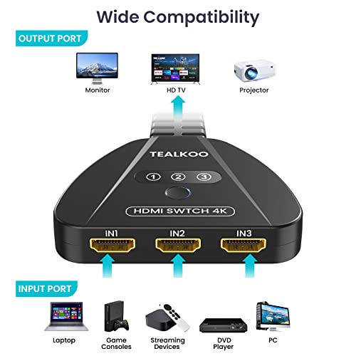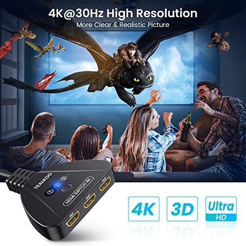 ✦ HDMI Switch 3 In 1 Out: De HDMI Switch 4K verzendt video en audio gemakkelijk van 3 verschillende HDMI-bronnen naar 1 HDMI-scherm. Met intelligent schakelen en handmatig schakelen schakel je tussen je 3 HDMI-apparaten. Effectief om veelvuldig in- en uitpluggen te voorkomen. en beschermt de HDMI-aansluitingen.⚠ 1 in 3 out wordt niet ondersteund.