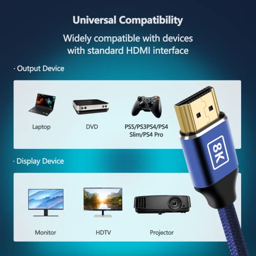 【Universele compatibiliteit】Het verbindingstype van deze 8K HDMI-kabel is HDMI naar HDMI,man naar man, compatibel met uw Ultra HDTV, projector, settopbox, Blu-ray-dvd, PS3, PS4, PS5, Xbox One/360, computer, laptop enz. Compatibel met alle apparaten met HDMI type A-aansluiting.
