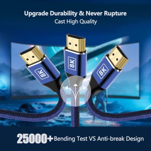 【Nieuwste versie-8K HDMI 2.1-kabel】Deze kabel is gecertificeerd door HDMI Association en voldoet aan alle standaardvereisten voor 8K HDMI-versie 2.1. De functie is bijgewerkt op basis van versie 2.0 en krachtiger, volledig achterwaarts compatibele HDMI 2.0/1.4/1.3 /1.2 /1.1 versies.