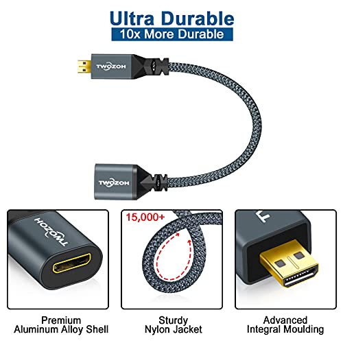 Specification: Twozoh Micro HDMI Mannelijke naar Mini HDMI Vrouwelijke Adapterkabel, Micro HDMI D Type Mannelijk naar Mini HDMI C Type Vrouwelijke Verlengkabel 4K/1080P (20CM)