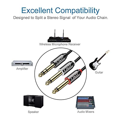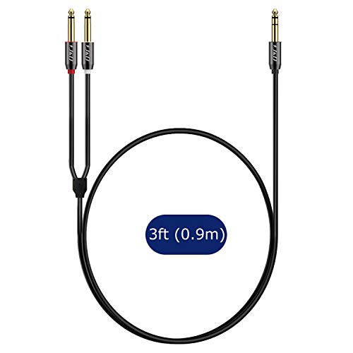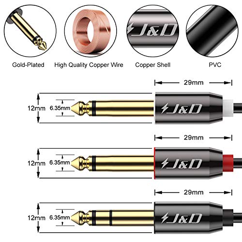 Specification: J&D 1/4 Inch TRS stereo Y-Splitter-Insteekkabel, Vergulde Koperen Schaal 6,35 mm 1/4 Inch TRS Mannelijk Naar Dubbele 6,35 mm 1/4 Inch TS Mannelijke Mono Breakout-Kabel, Audiosnoer, 0.9 Meter