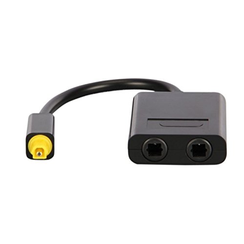 2port Toslink Digitale Optische Audio Splitter Adapter Vezel Optische Audiokabel 1 In 2 Uit 10cm, zwarte kleur Hiermee kunt u één toslink optische digitale audiobron aansluiten en splitsen in twee verschillende ontvangende apparaten zoals een A/V-ontvanger en een televisie; Ideaal voor het aansluiten van uw CD-speler, DVD-speler of andere digitale audiobron op zowel van uw ontvanger als recorder; 24k Gold Connectors, 1mm low-loss corder; e, low-jitter synthetische vezels en zware metalen connectoren om trillingen te dempen, waardoor u de ultieme luisterervaring krijgt; Digitale optische One verdeelt zich in twee Splitter voor CD/DVD PS3 X-Box360 Computer.