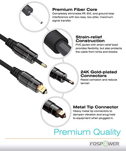 Specification: FosPower 1.8M Vergulde Toslink naar Mini Toslink Digitale Optische S/PDIF Audio Kabel met Metalen Connectors & Strain-Relief PVC Jacket