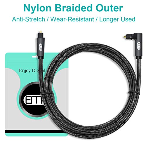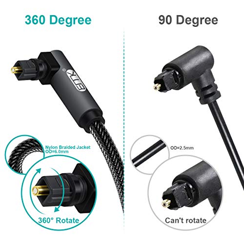 Specification: Optische Kabel 90 Graden Ontwerp Digitale optische audiokabel Nylon Gevlochten Jas Toslink kabel voor TV, Luidspreker, Home Theater, Sound Bar,PS4, Xbox etc 2M/Zwart