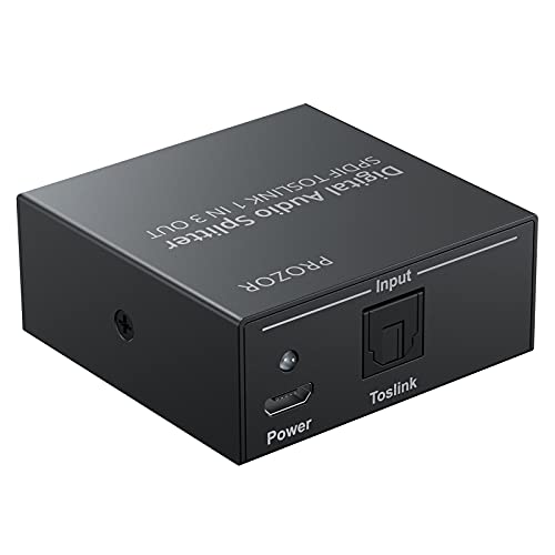 PROZOR Digitale Audio Splitter 5.1CH 1 x 3 SPDIF Toslink Splitter Ondersteuning LPCM 2.0/DTS met Toslink Kabel voor STB VHS VCR Blue-Ray DVD Spelers HDTV Versterker