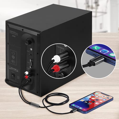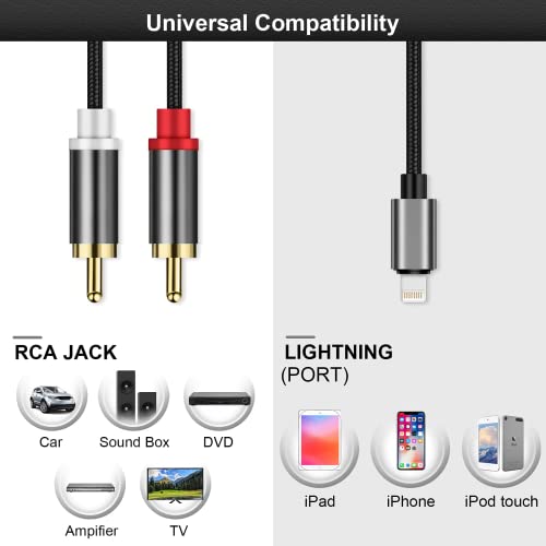 [Brede compatibiliteit] De Lightnig-poort is compatibel met iPhone 13/13 Mini / 13 Pro / 13 Pro Max / SE 2020 / iPhone 12/12 Pro Max / XR / XS Max / XS / X / 8Plus / 8/7/6, iPod, iPad enz. De cinch-aansluiting is compatibel met thuisaudiosystemen, zoals een versterker of een ontvanger met RCA-aansluiting (wit/links en rood/rechts).