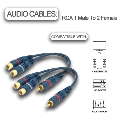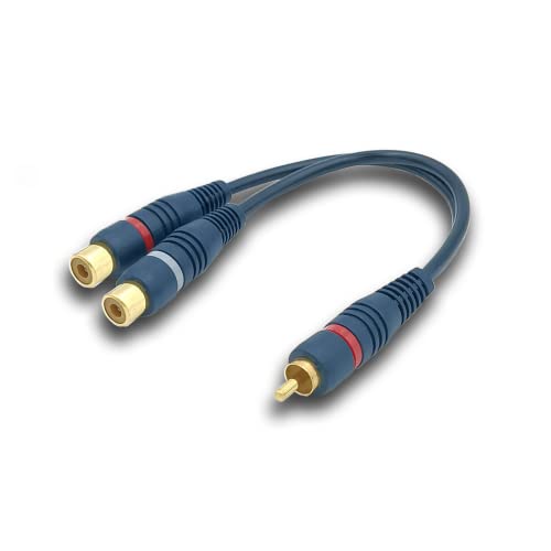 BRIEFCEC RCA verlengkabel 15 cm één punt twee Y model audiokabel (1 stekker met 2 stopcontacten, 2 stuks, marineblauw)