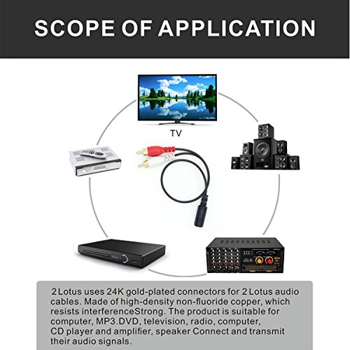 Specification: QiCheng&LYS 3,5 mm naar RCA-audiokabel, verguld 3,5 mm vrouwelijk naar 2RCA mannelijk stereo Y-splitter audiokabel voor smartphones, MP3, tablets, luidsprekers, thuisbioscoop (3.5 Vrouw tot 2RCA 30cm)