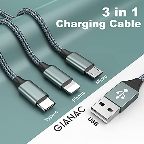 Multi USB Kabel,GIANAC Universal Ladekabel [1.2M] Schnell Ladekabel 3 in 1 Mehrfach Ladekabel iP Micro USB Typ C Lightning für iPhone, Android Galaxy, Huawei, Oneplus, Sony, LG, Honor View-Green