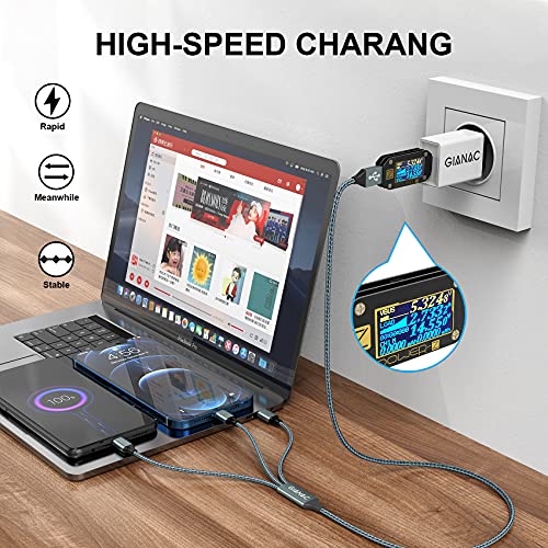 🍀 【Stärkung des Haltbarkeits】GIANAC Ladekabel 3 in 1 Umhüllt von stark geflochtenen Nylonfasern, die eine hervorragende Verdrehsicherheit und Abriebfestigkeit aufweisen. Dieses Multi-Ladekabel hält mindestens 9.000 Zyklen eines 90-Grad-Biegetests stand. Sehr gut geeignet für den täglichen Gebrauch.