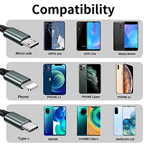 🍀 【Breite Kompatibilität】 3 in 1 multi ladekabel Hat drei Ladeanschlüsse:Phone port,Micro port,USB Typ-C port. Kompatibel mit Telefon Xr / Xs / X / 8/8 Plus / 7 Plus / 7 / 6s Plus / 6s / 6 Plus / 6 / SE / 5s / 5c / 5; Samsung Galaxy S10 / S9 / S8 / S7 / S6, Note 8, A3, Huawei P30 / P20 / P10 / Mate10; Mate10, Honor View 10, Nexus, HTC, Motorola; Nokia, LG; Sony; PS4 und mehr.