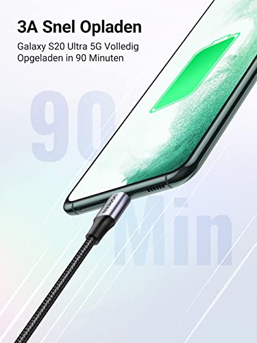 Snel Opladen tot 3A: UGREEN Type C kabel is compatibel met verschillende oplaadprotocollen, zoals: QC 3.0/ 2.0, AFC en Huawei Fast Charge. De maximale output bereikt 18W (5V/3A, 9V/2A, 12V/1.5A). Deze USB 2.0 data kabel biedt ook een gegevens overdracht snelheid tot 480 Mbps.