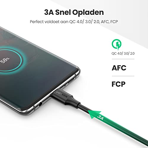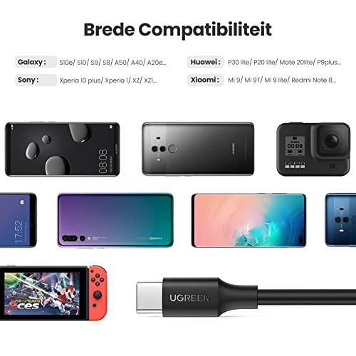 Brede Compatibiliteit: UGREEN USB C kabel is compatibel met Galaxy S21/ S20/ S10/ S9/ S8/ A20e/ A51, Huawei P40 Lite/ P30 Lite/ P20 Lite/ Mate 20 Lite/ Honor 9, Redmi Note 9 Pro/Note 9 Plus, enz.